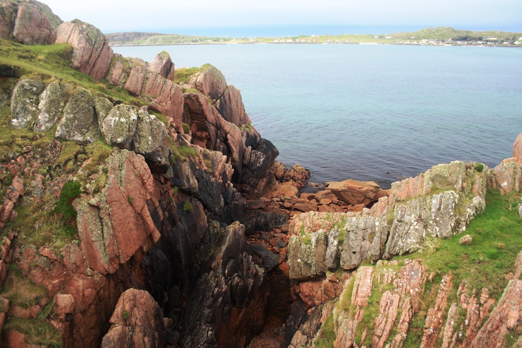 Fionnphort in the SW of mull at the end of the peninsula called the Ross of mull is a great place to see the well exposed Ross of Mull Granite. The pink granite looks very distinctive , especially in the rays of the setting sun where its pink colour (due to the presence of potassium feldspar) is very striking. There are two locations that are well worth a visit. The first is just south of the ferry slipway, the other is the old quarry at Tormore just north of the village.