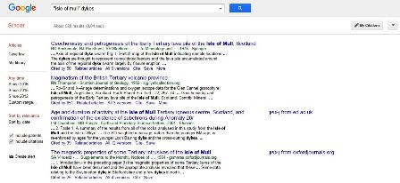 A good starting point is Google Scholar scholar.google.co.uk. Simply type in a search string like "Isle of Mull" and "dykes" and see what comes up!