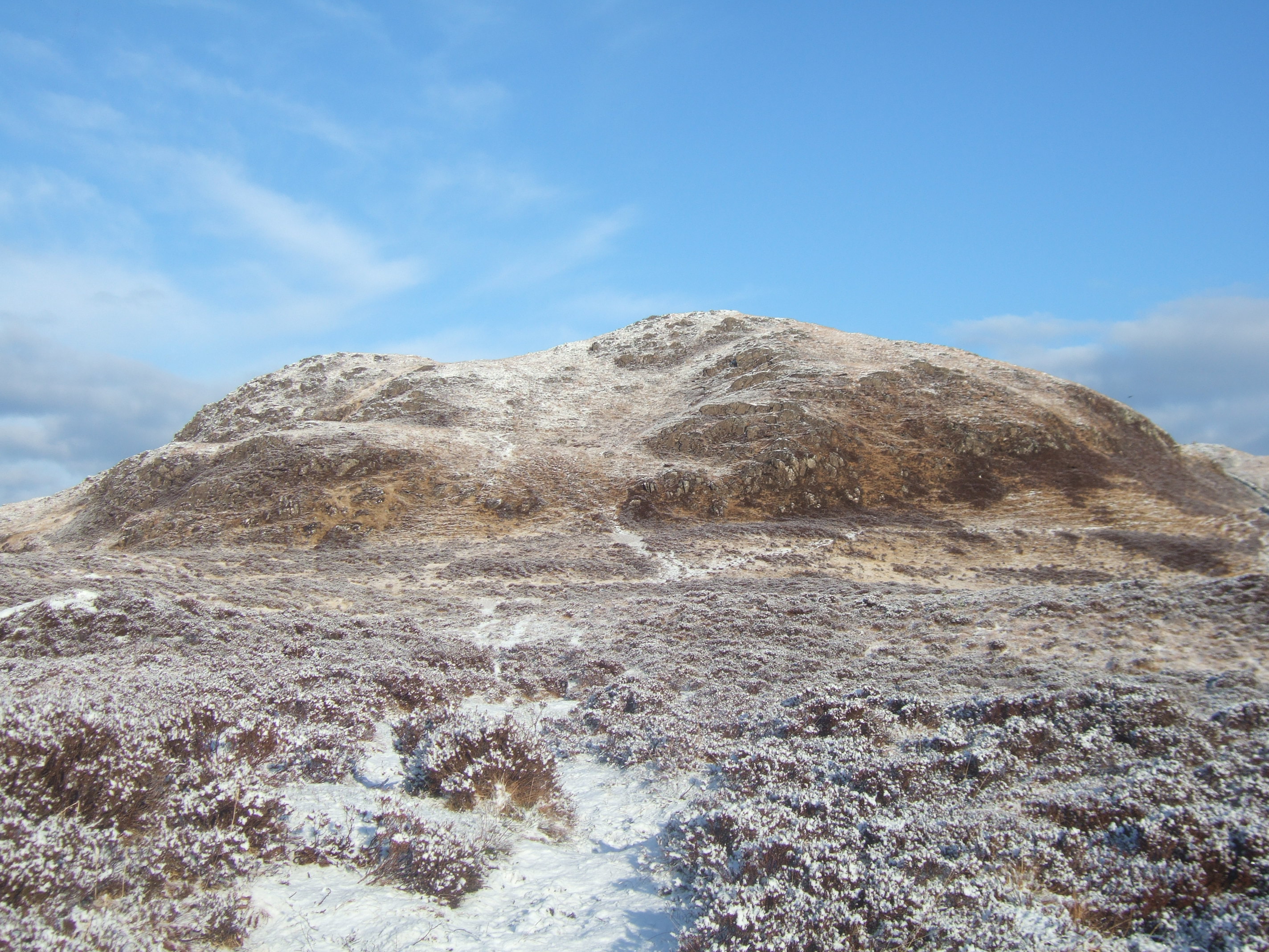 The summit hollow is filled with a loch (Lochan ‘S Airde Beinn) which is probably the result of glaciation. It is sometimes referred to as a crater. It isn't!