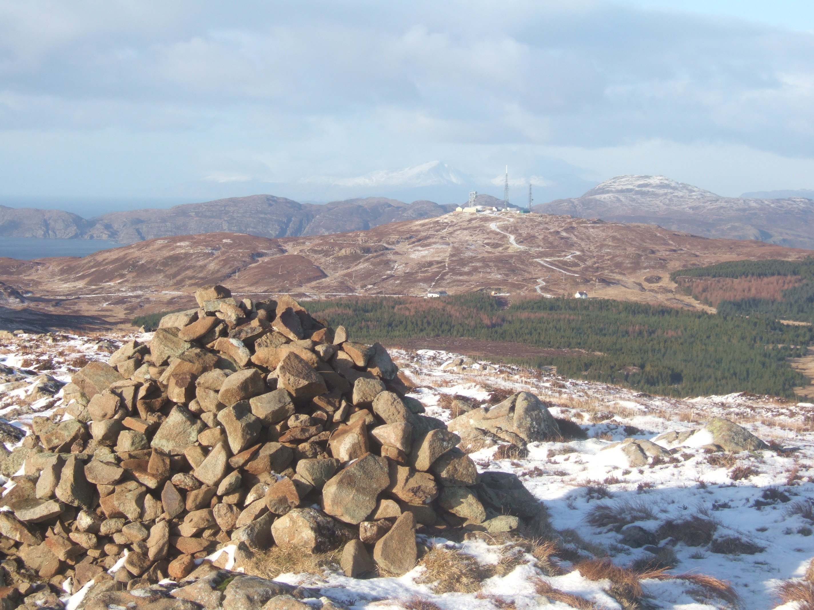 ‘S Airde Beinn, Grid Ref: NM 475527 (pron. SARSJE BINE approx) near the Mishnish Lochs just west of Tobemory is an elongate rocky hill, 295m in height. It is the highest point on the North side of the Mishnish Lochs.