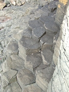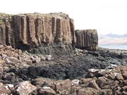 The columns are simpler in form than those seen at Staffa. They occur as a "collonade" structure without the "entablature" twisted curving columns on top that is well seen in Staffa, especially near Fingals Cave. Also there is no obvious ash deposit at the base as is again clearly seen in Staffa.