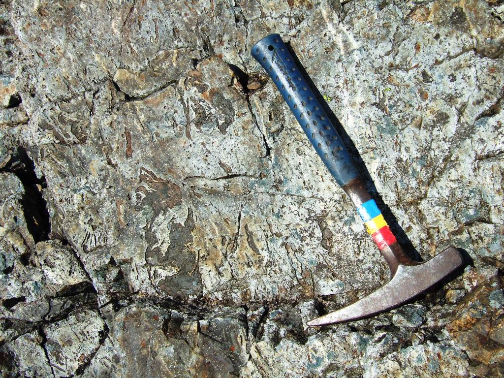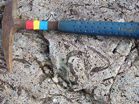 Swirls of basic material are found amongst the felsite.