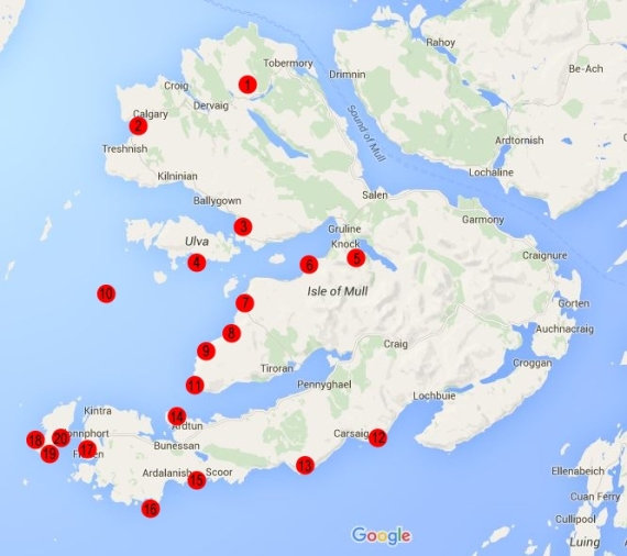 - Iona - Columba's Bay - famous for its green serpentine-marble pebbles.