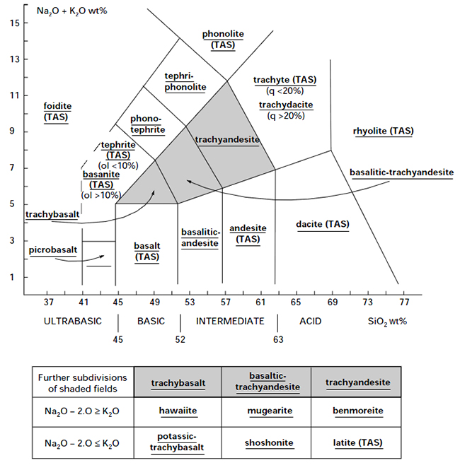 Specifically it is a trachyandesite where the